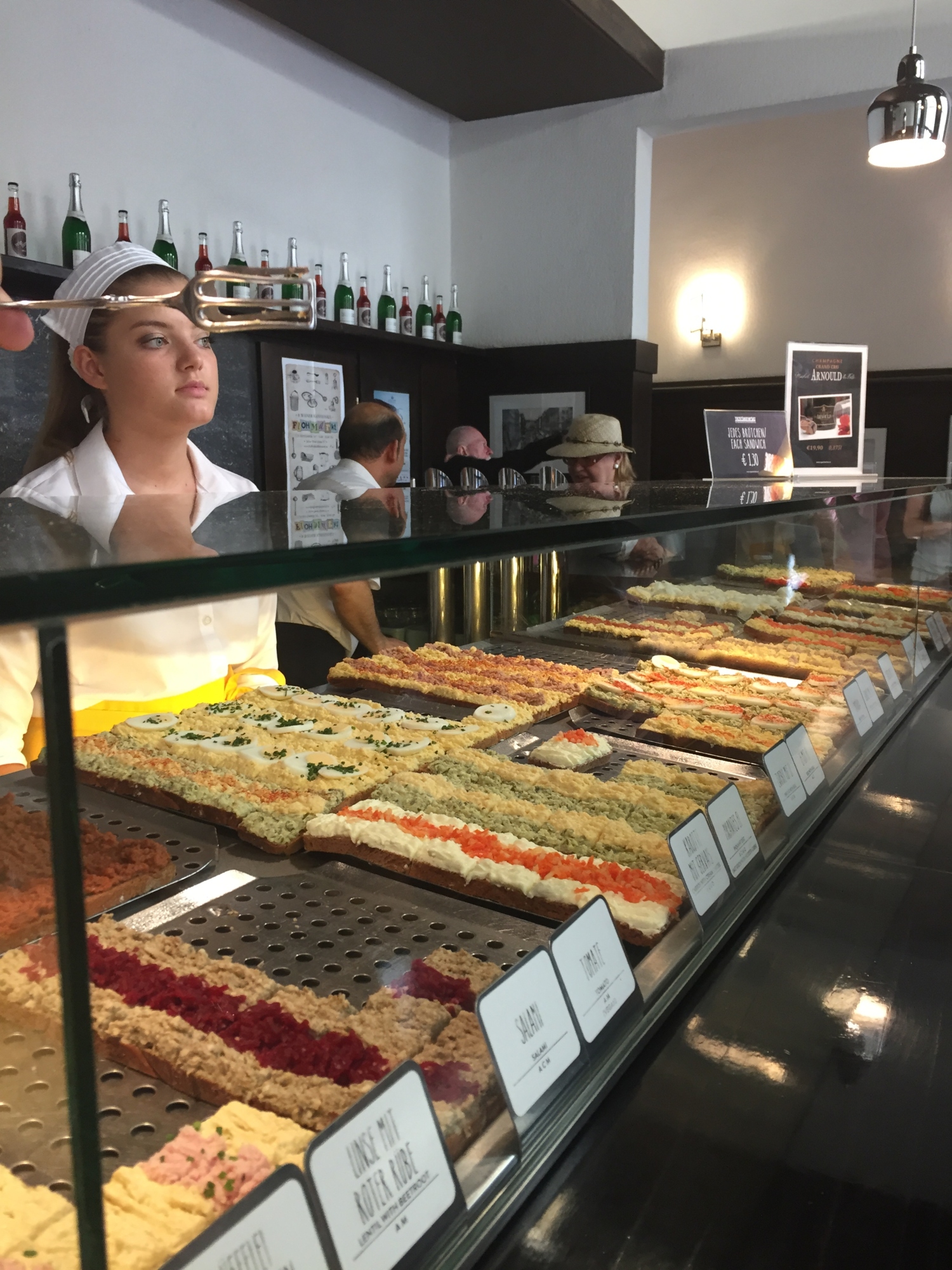 - Probar los sanguchitos de parado en Buffet Trzesniewski