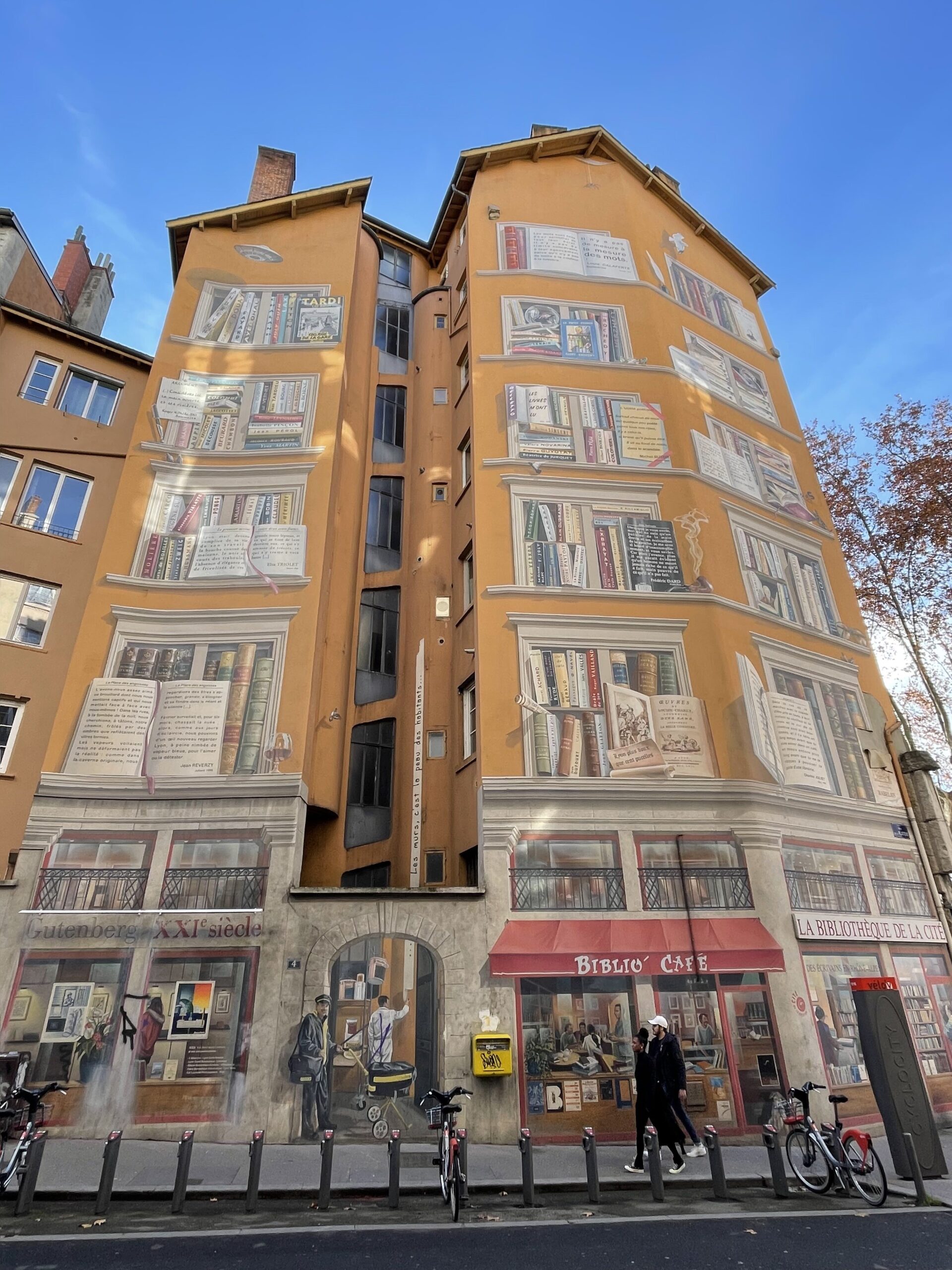 Es un mural espectacular en todo en un edificio con los lionenses famosos asomados a lo alto de esta fachada con 7 pisos de altura. Van a encontrar por estas cuadras varios frecos más de estilo similar que me encantaron como el de “La bibliothèque de la cité”.