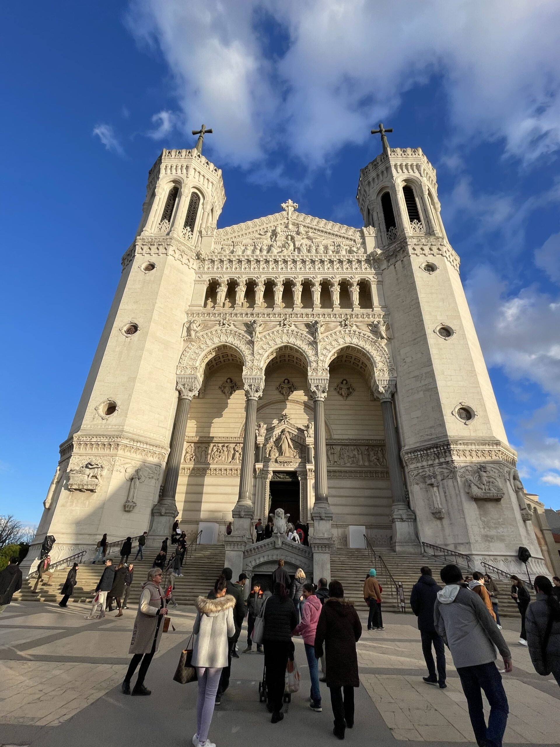 La Basílica, por su parte, fue diseñada por Pierre Bossan y construida entre 1872 y 1896, y tiene una mezcla de arquitectura románica y bizantina.