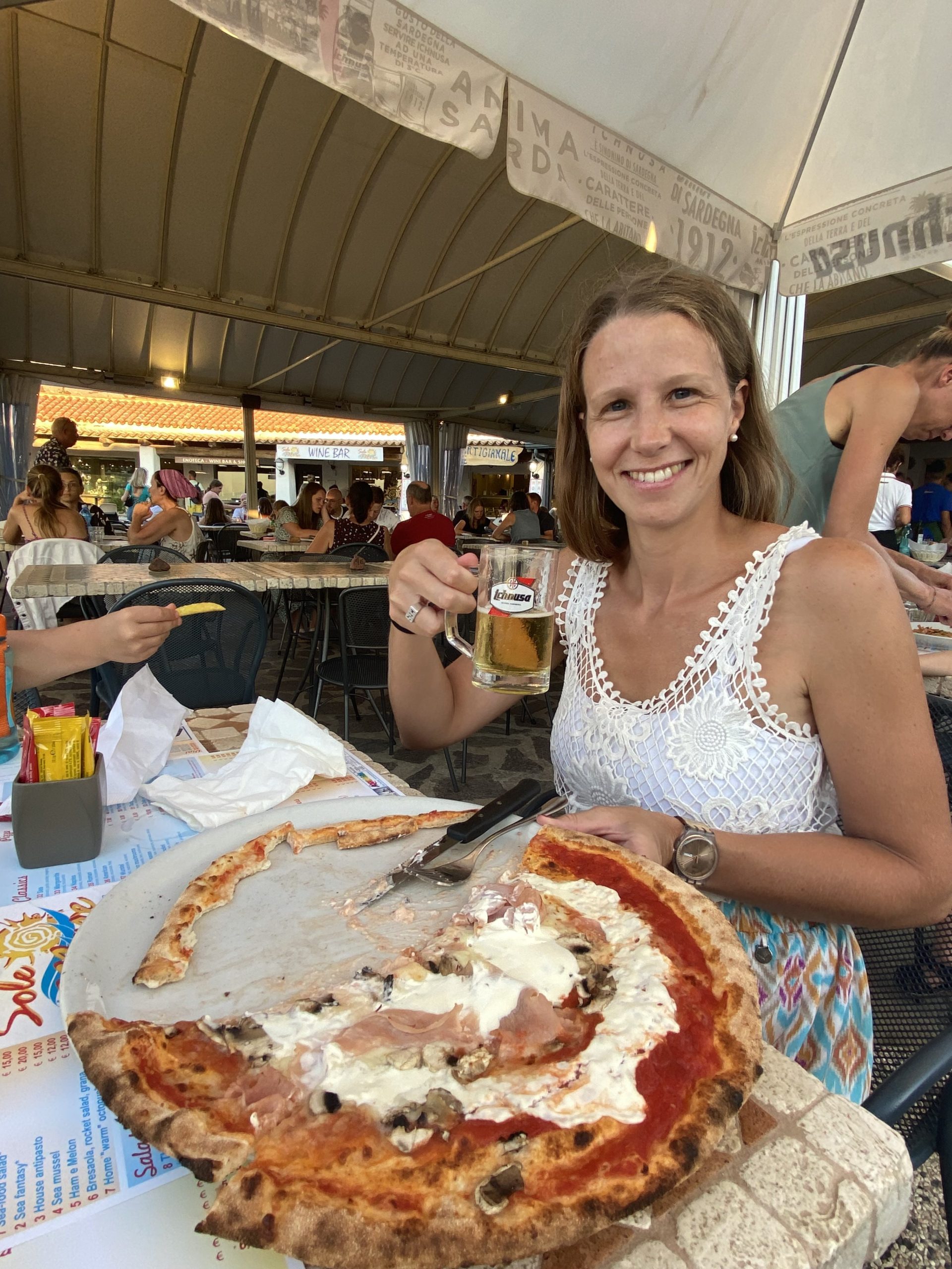 - Pizza y cerveza Ichnusa de Cerdeña