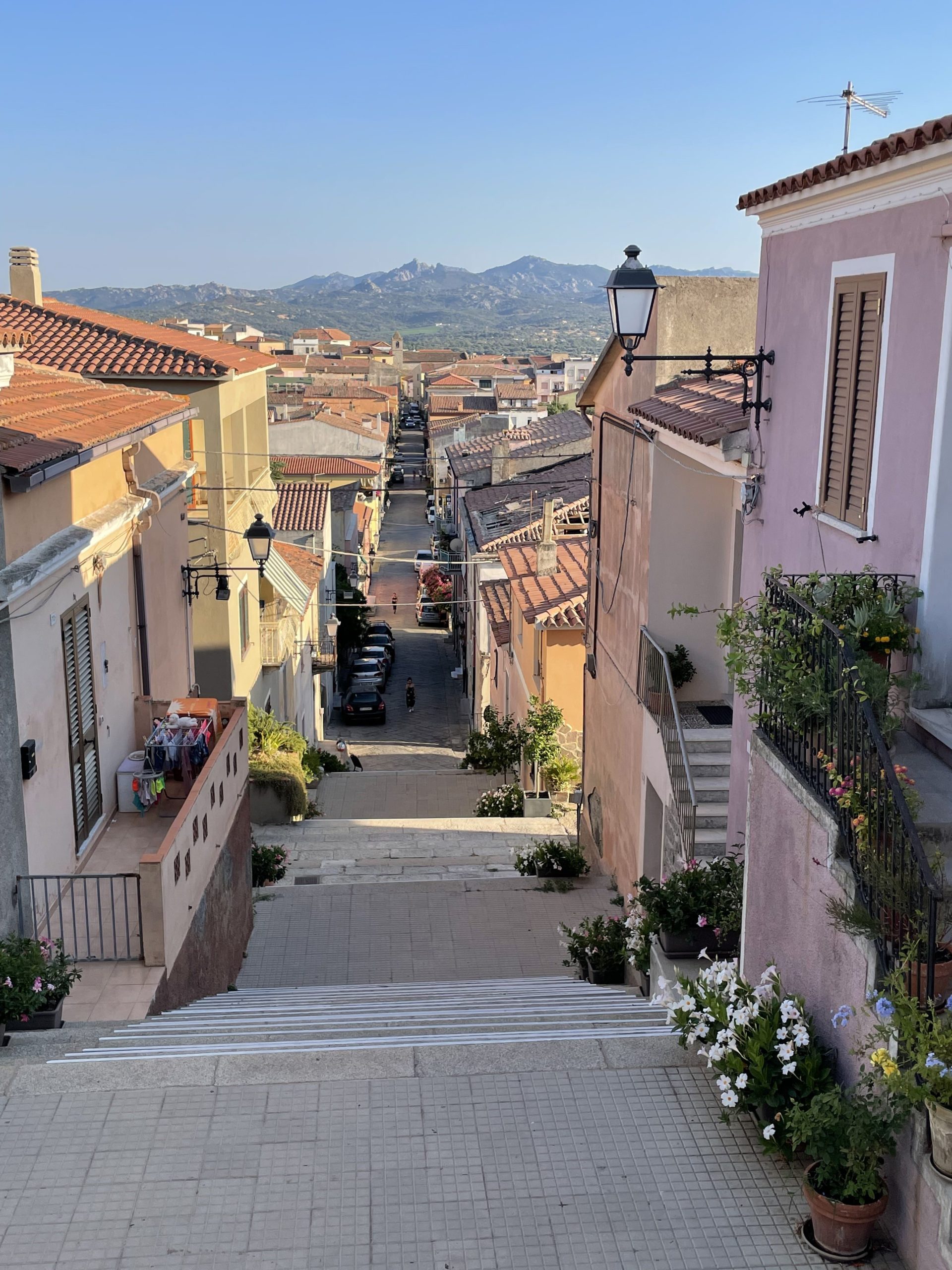 Conocimos una tarde este pequeño pueblo del interior de la Costa Esmeralda, más austero. No se si les aconsejo que vayan especialmente, no tiene tanto atractivo mas que la Escalera intervenida artisticamente (La Scalinata di Santa Lucia) y las vistas desde la Iglesia Santa Lucia.