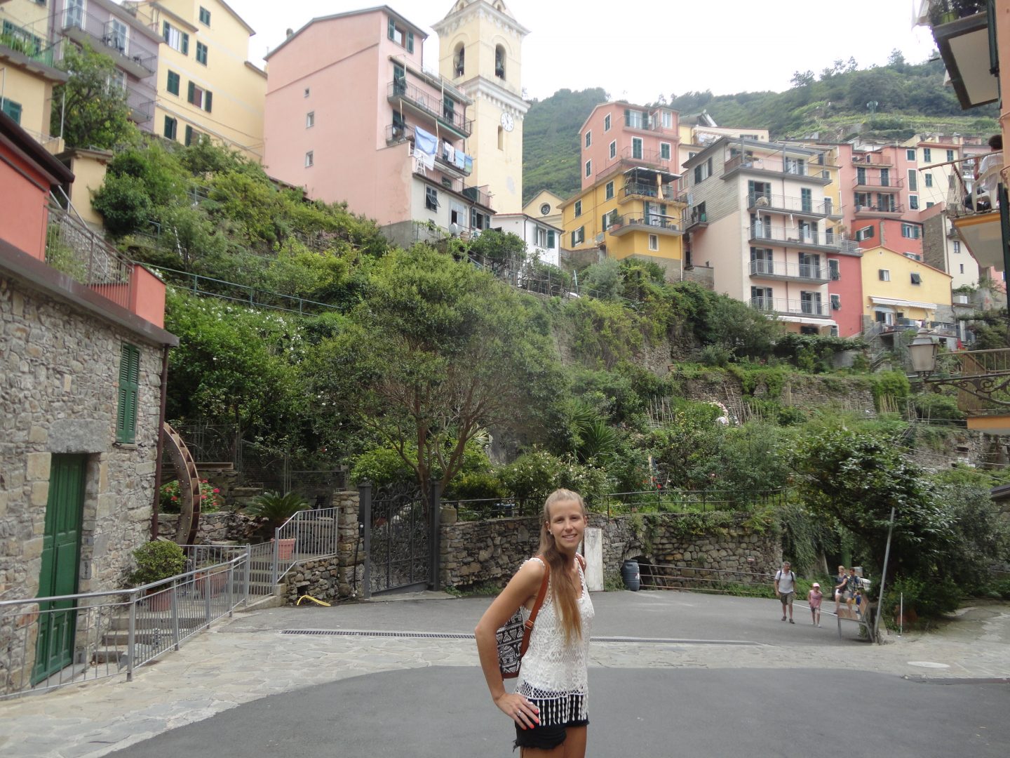 Es el único pueblo de los 5 que no tiene salida al mar. Está ubicado en lo alto de una colina como a 100 mts de altura del mar. Para subir de la estación de tren a Corniglia hay que subir una escalera de ladrillo de 400 escalones! Cuestan pero lo vale!