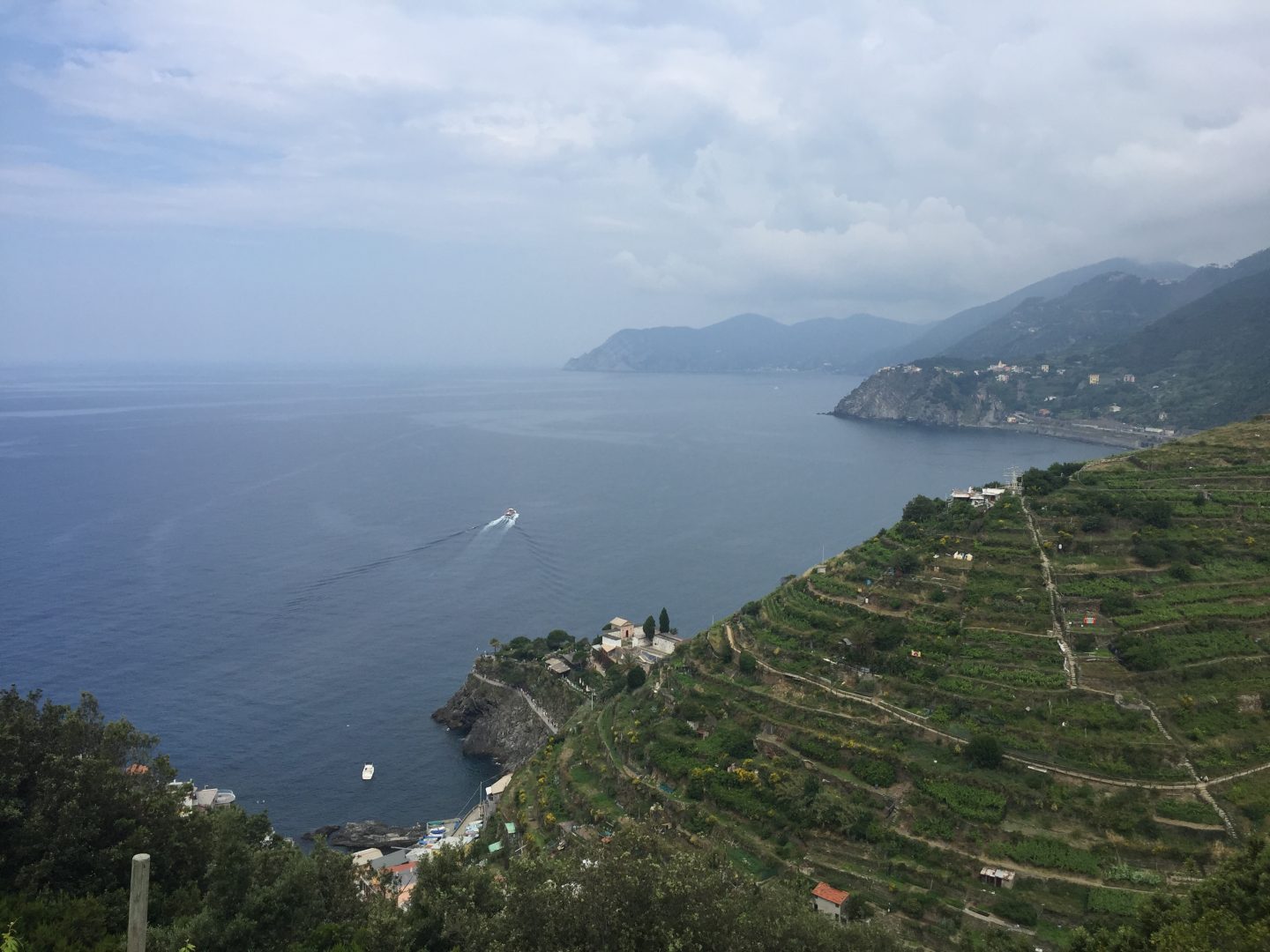 El día del recorrido empezamos muy temprano por la mañana saliendo de Riomaggiore. Como nos gusta bastante hacer actividad física con mi esposo dijimos: “Hagamos todo caminando!“. Lo que no sabíamos es que el tramo de Riomaggiore-Manarola iba a ser tan duro! Hay que subir muchísimo entre medio de las terrazas y senderos con piedras. Llegamos muy cansados a Manarola, por eso a partir de ahí decidimos tomar el tren para el resto de los pueblos y volver en barco.