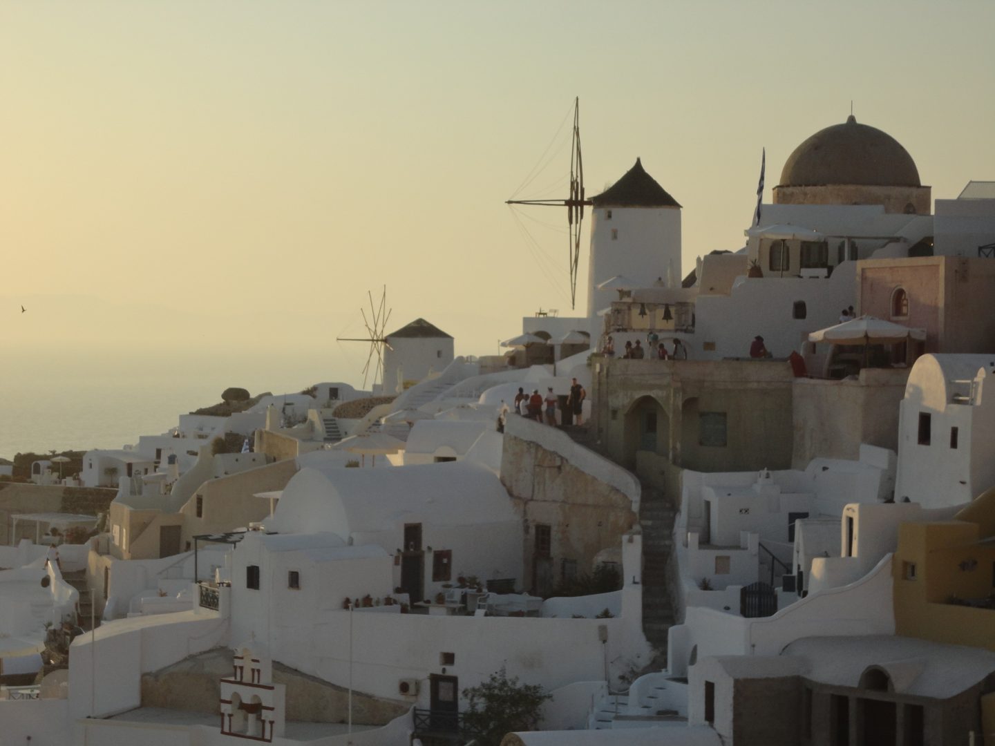 Lo mas mas turístico de Santorini es Oia que es la típica postal y donde se ve el atardecer en Caldera.