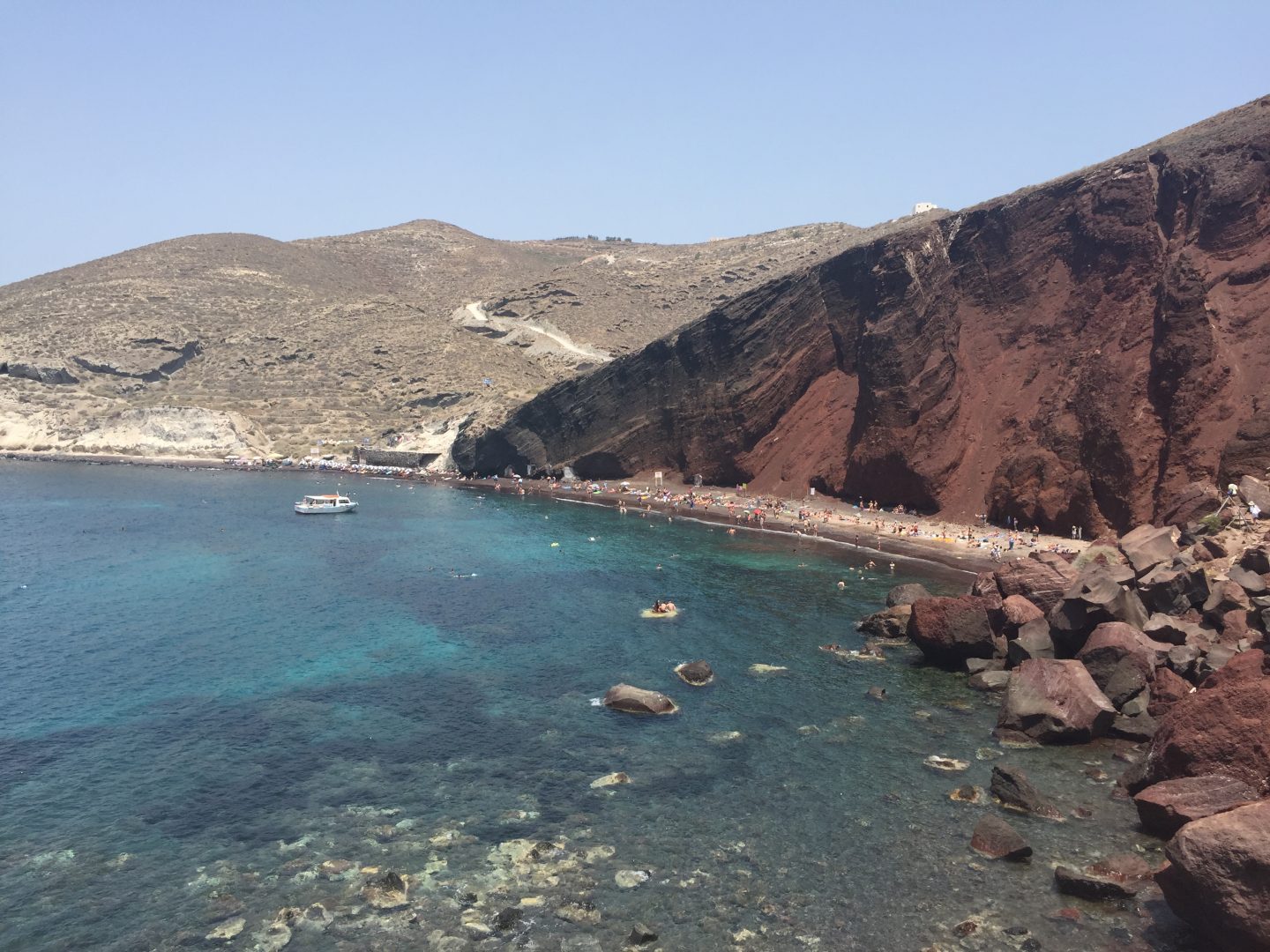 De Santorini hay varios lugares para conocer. Nosotros estuvimos por Akrotiri que hay una playa con arena volcánica “Red beach”, también fuimos a Kamari, me gusto mucho más que Akrotiri. Después está White Beach pero se accede solo en barco o en excursión.
