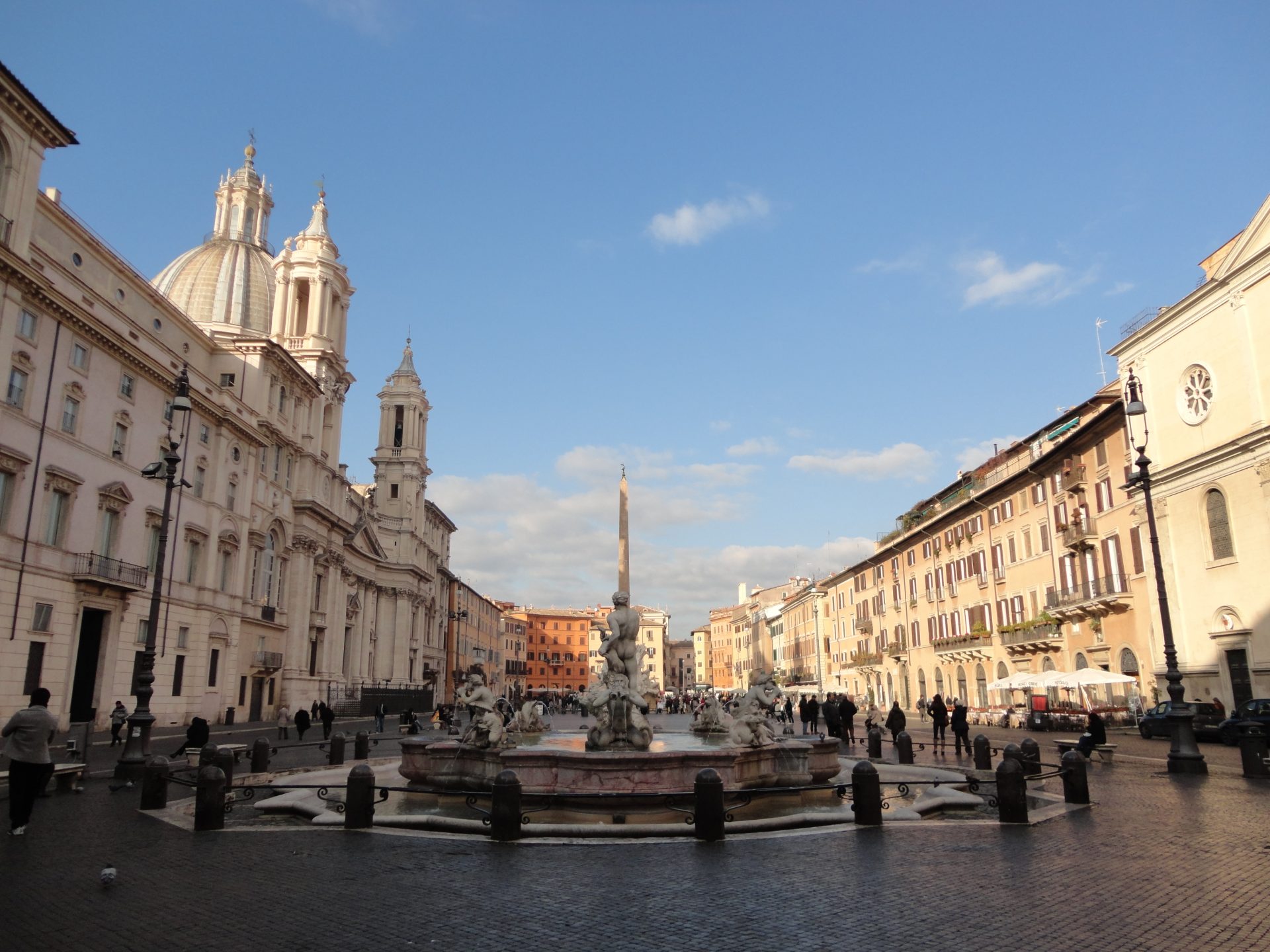 - Piazza Navona: Acá están la Fuente de los Cuatro Ríos de Bernini, la Fuente del moro y neptuno y la Iglesia de Santa Inés en Agonía de Borromini.